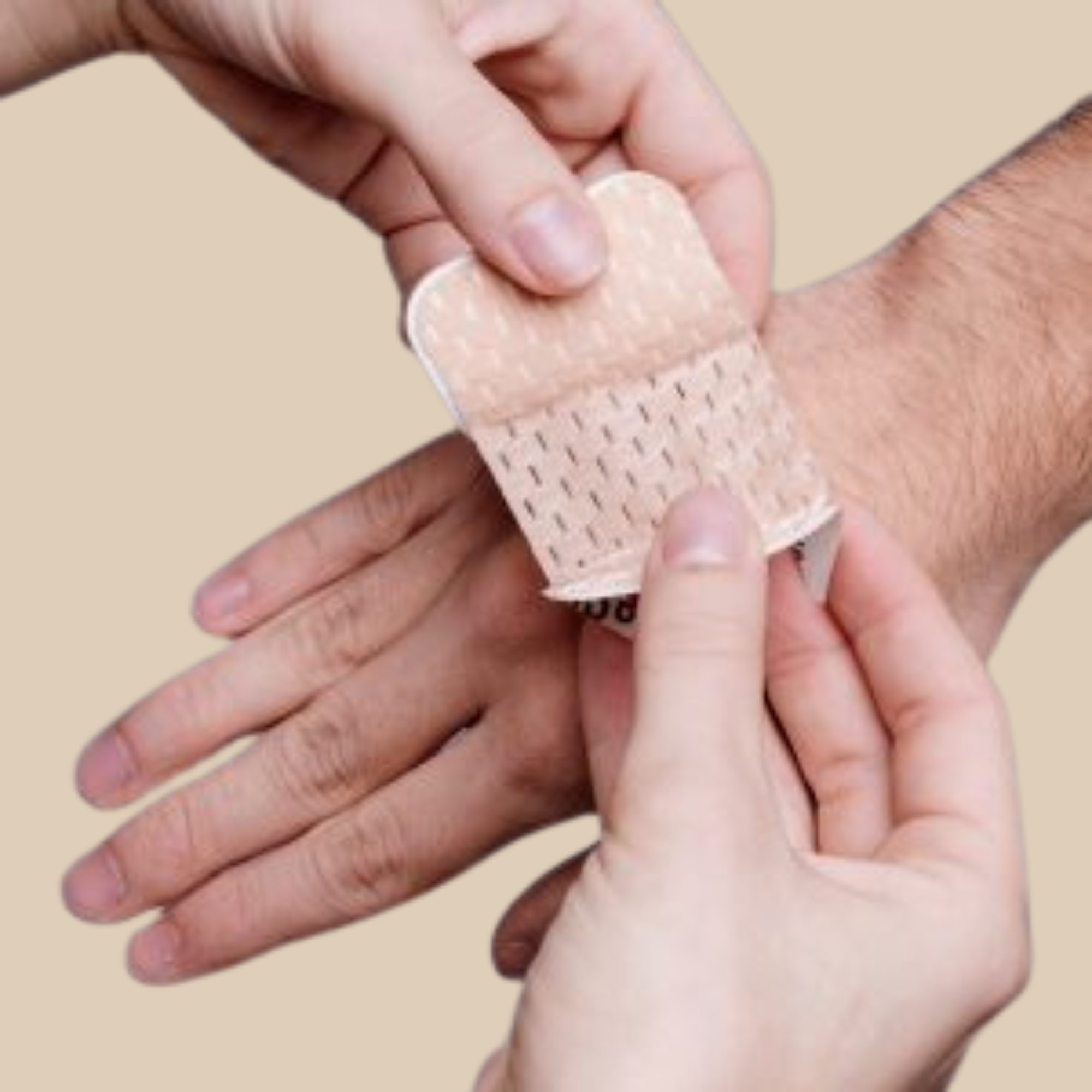 Zorg dat het gebied waar de wrijving optreedt of waar de huid is aangedaan, in het midden van de pleister valt. Gebruik een royaal stuk, want bij te kleine patches kunnen de randen loslaten of oprollen. Je kunt Reskin eenvoudig zelf op maat knippen met een scherpe schaar. Rond de hoekjes af voor het beste resultaat.