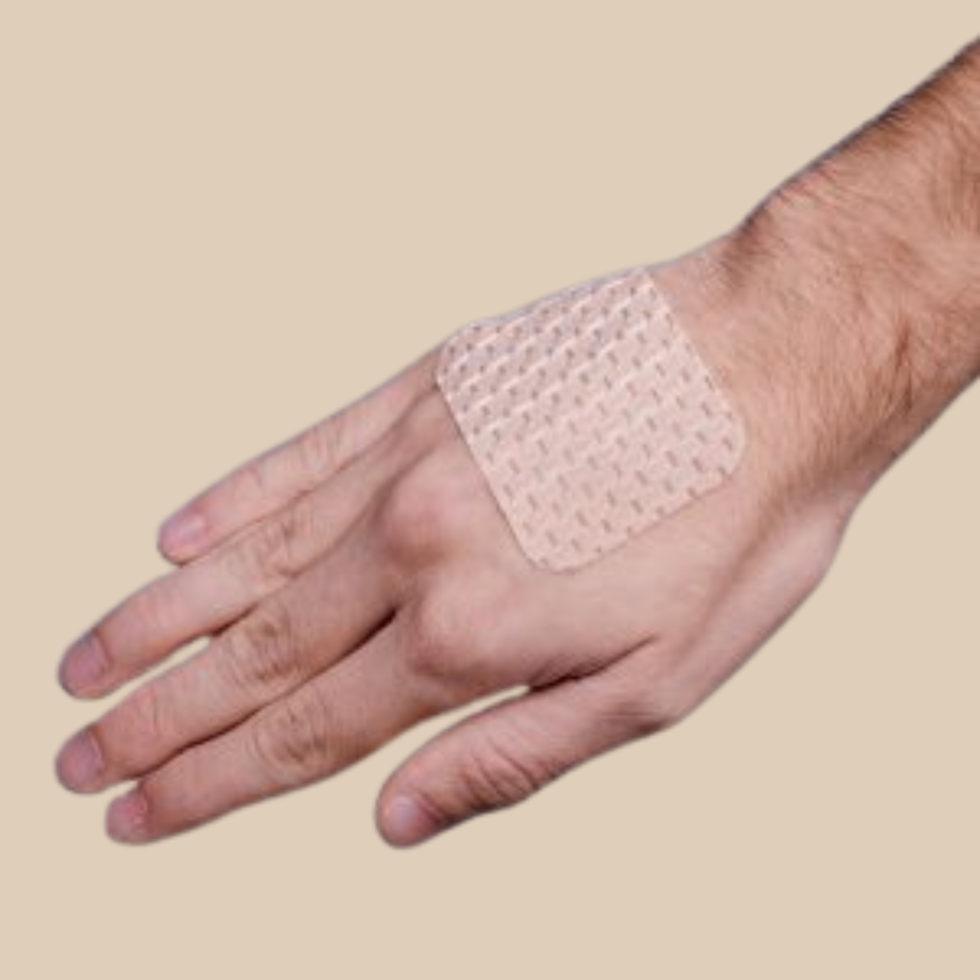 Je kunt het eenvoudig uitwassen met water en eventueel een milde zeep. Laat het daarna drogen op een vlakke ondergrond. Zodra het droog is, kun je het direct opnieuw aanbrengen op de huid.